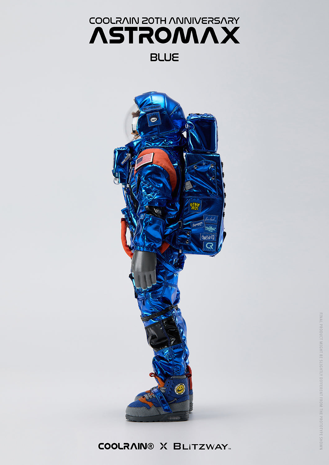 Crafted using fabric that reminds of an actual authentic spacesuit for the head and boots, meticulous attention to detail and precise manufacturing processes were necessary for this project. Through collaboration with Blitzway, the Astromax retains the same high-quality standards as Coolrain’s original prototype.