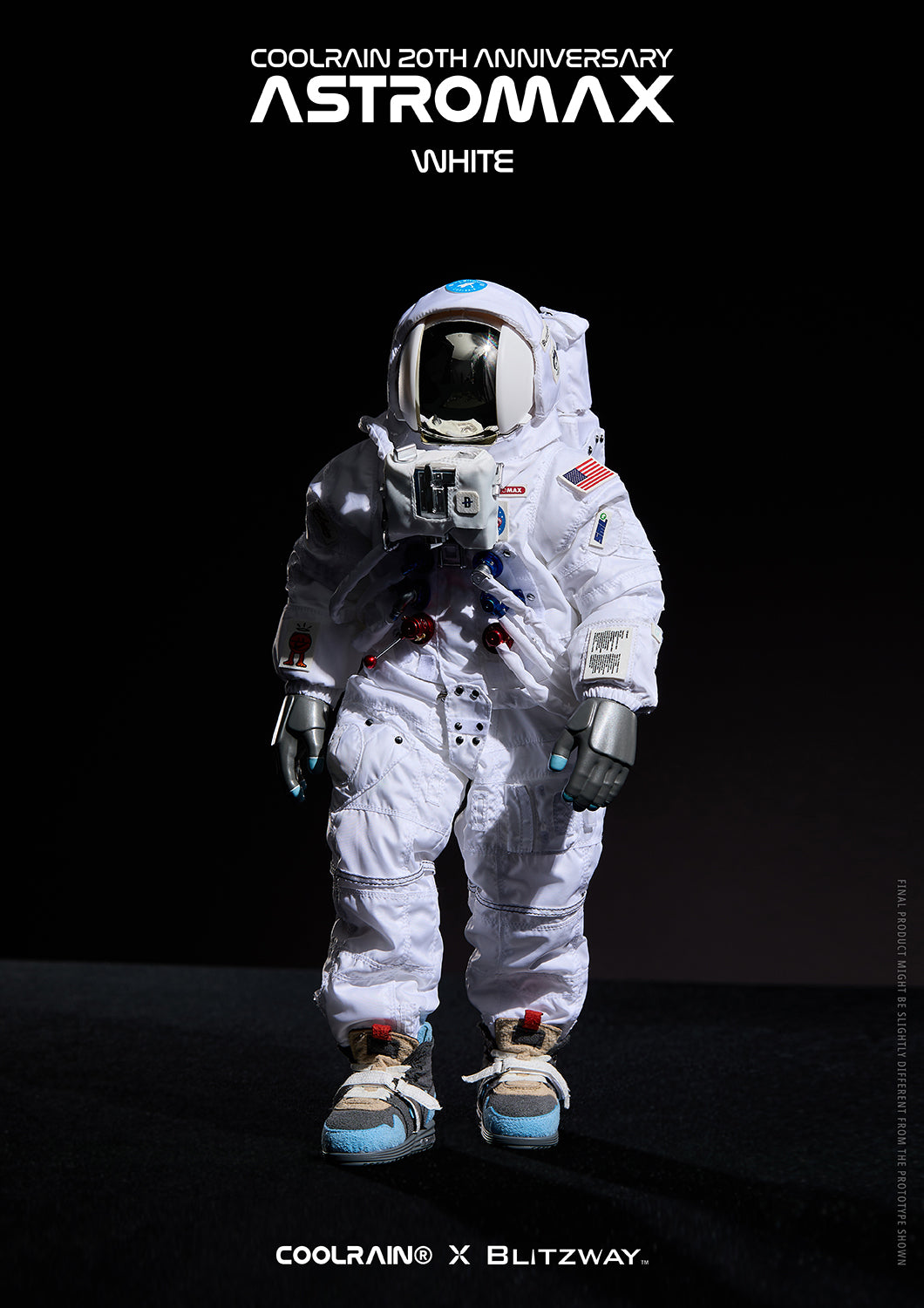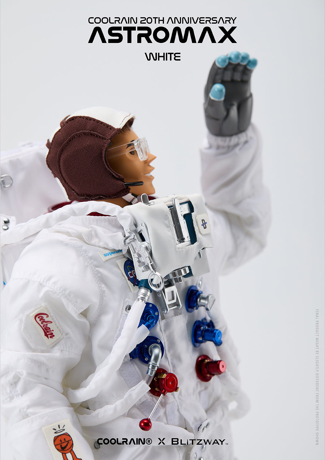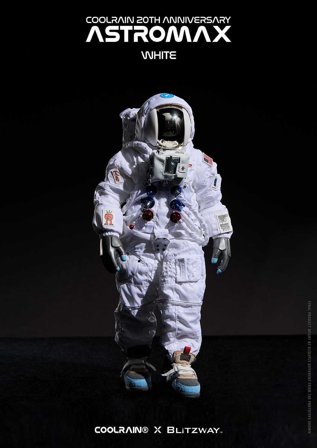 Crafted using fabric that reminds of an actual authentic spacesuit for the head and boots, meticulous attention to detail and precise manufacturing processes were necessary for this project. Through collaboration with Blitzway, the Astromax retains the same high-quality standards as Coolrain’s original prototype.