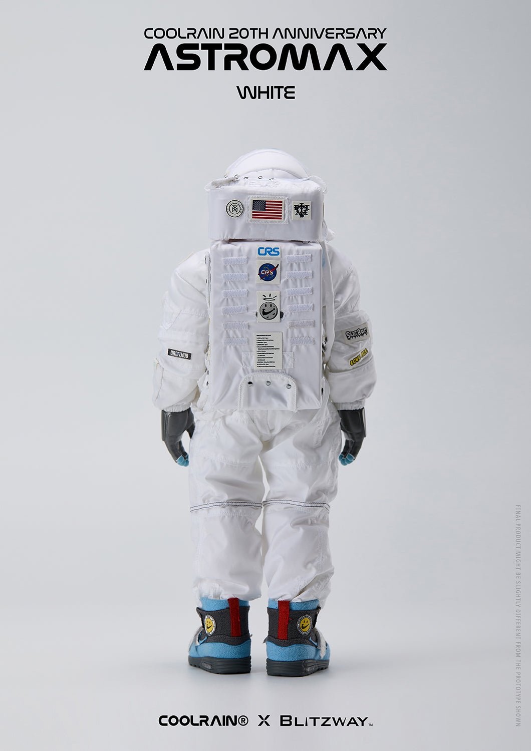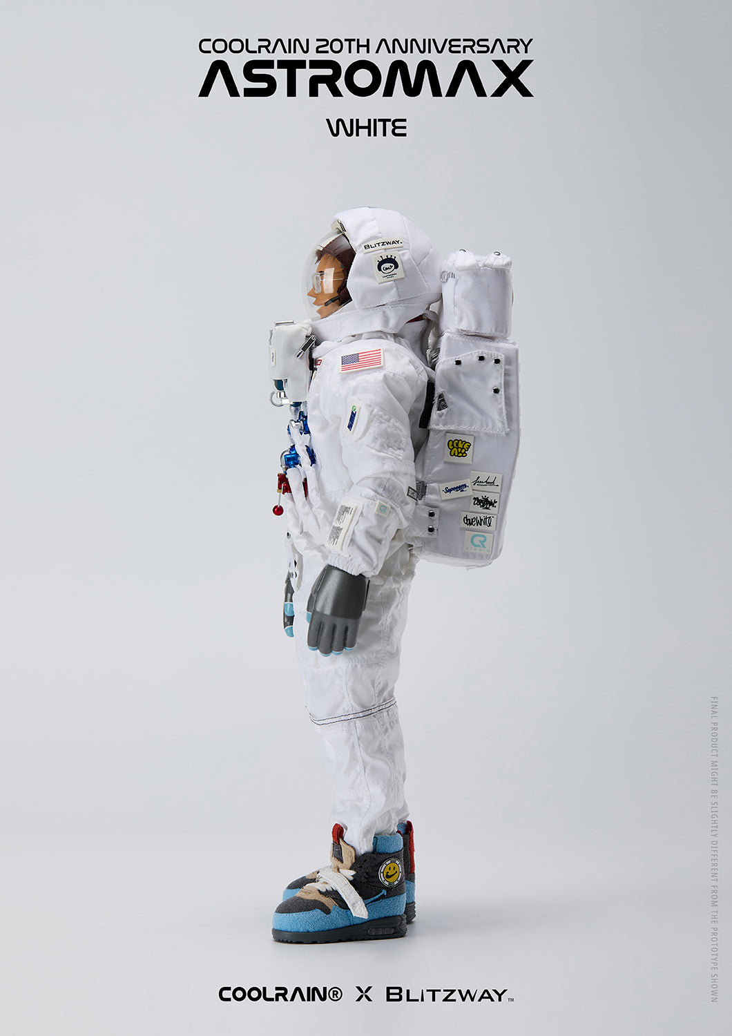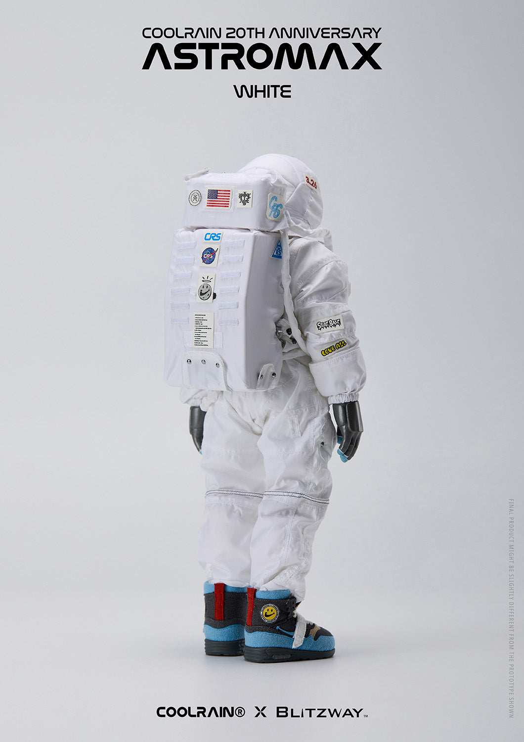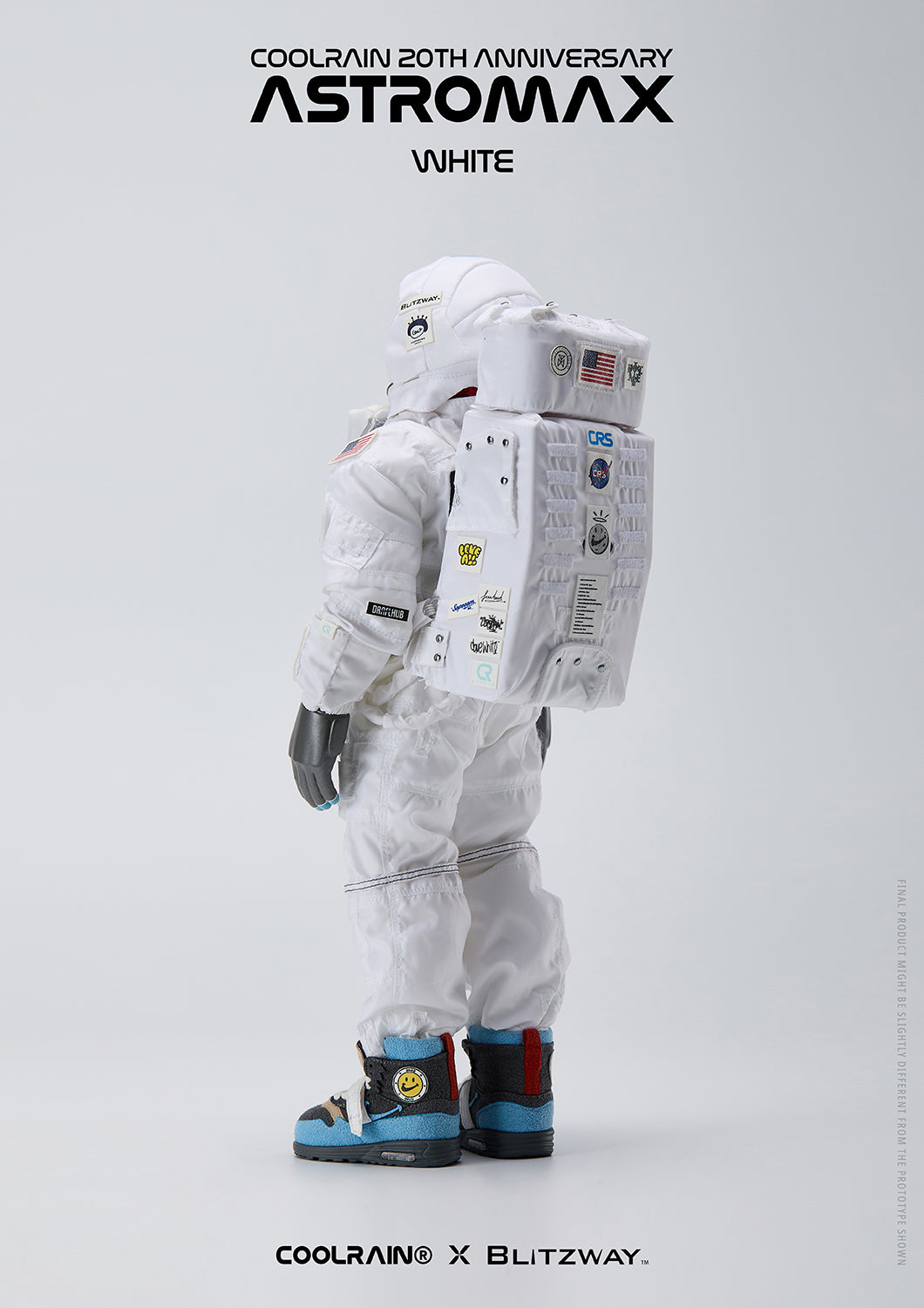 Crafted using fabric that reminds of an actual authentic spacesuit for the head and boots, meticulous attention to detail and precise manufacturing processes were necessary for this project. Through collaboration with Blitzway, the Astromax retains the same high-quality standards as Coolrain’s original prototype.