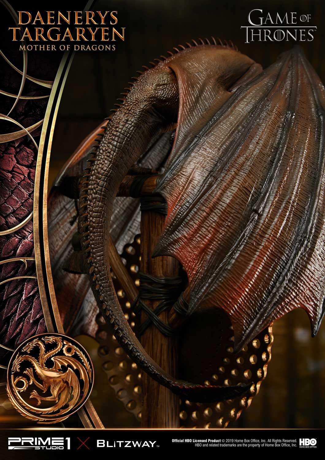 BLITZWAY’s special top artist team did the wonderful job on the statue as they are the industry’s top class in face modeling.All the characteristics are faithfully reproduced to the smallest details. The dress is made of fabric material which gives a nice touch of reality. The beautiful Mother of Dragons is surrounded by her three baby dragons – Drogon, Rhaegal, and Viserion.They are crafted with the precision and attention to details to please even the most demanding fans.