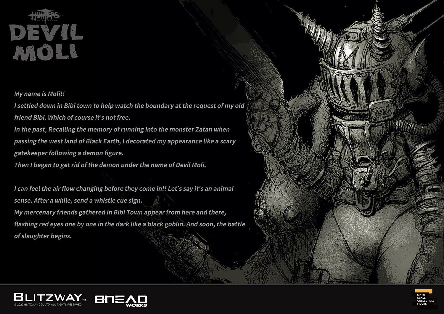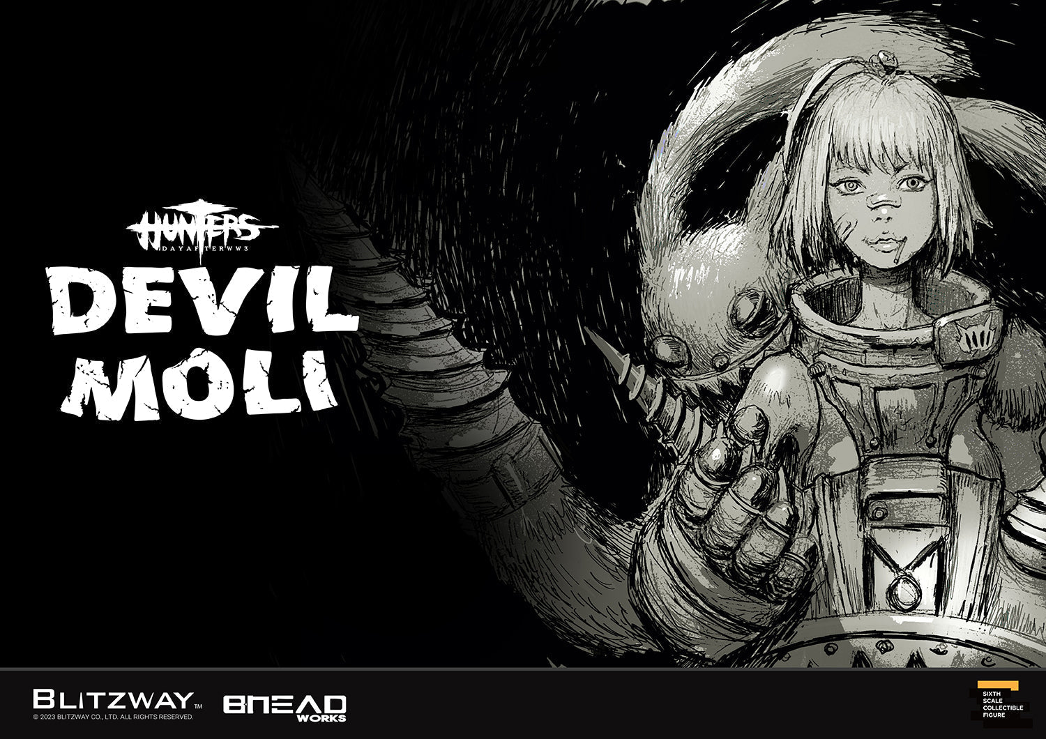 BLITZWAY is thrilled to share that we officially launch the #5 character of BHEADworks’ original design figures ‘Devil Moli’ from ‘HUNTERS: Day After WWIII.’BHEADworks (Artist Yeon-gyun, Jung) has been loved for its original character design based on the dystopianworldview.
