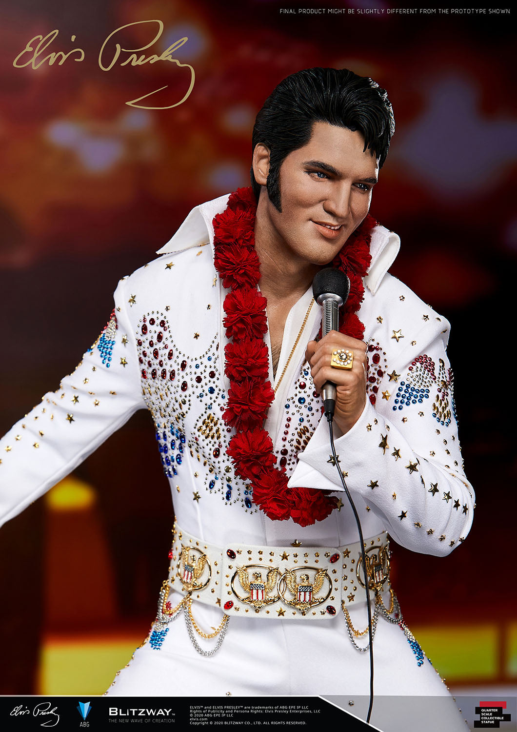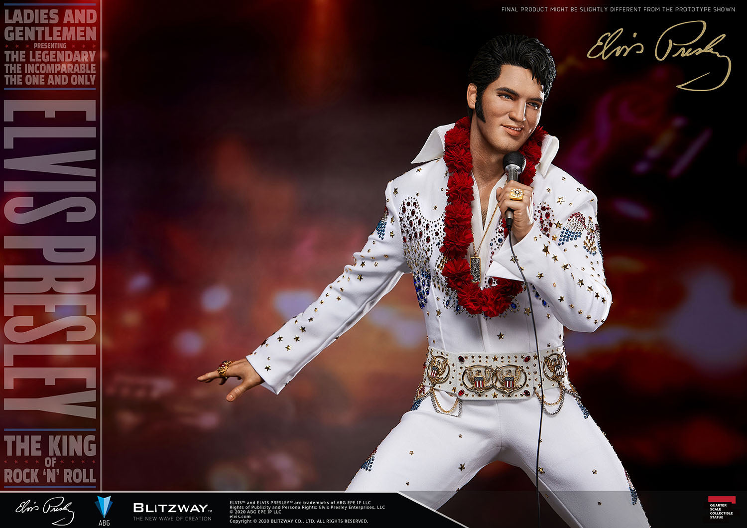 BLITZWAY is honored to officially present a quarter-sized statue of Elvis Presley, who lives more than 40 years after his death as an eternal cultural hero as the first rock star in pop history and a giant in pop music history!In this project, we aimed to express the image of a loved superstar and the symbolic significance he has.