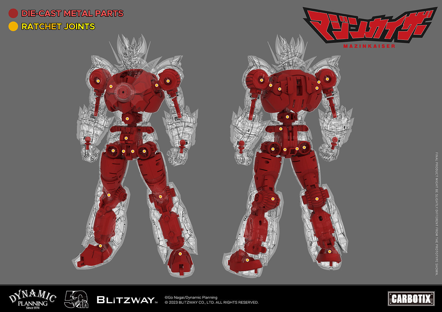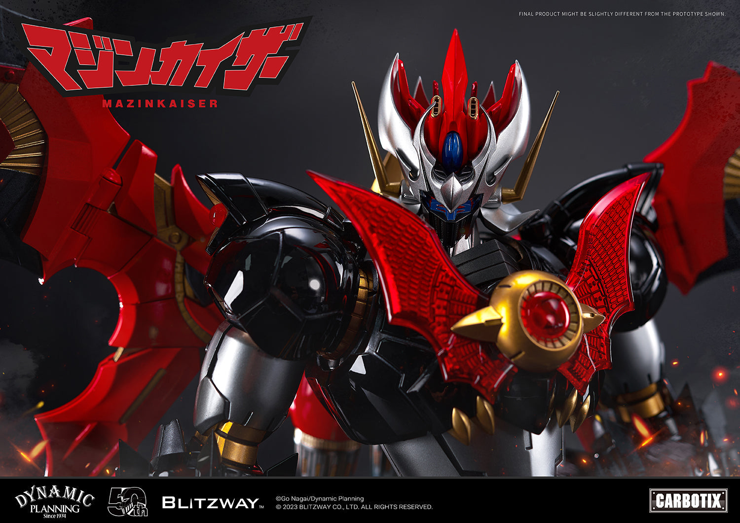 Blitzway is proudly presenting Mazinkaiser action figure to commemorate the 50th anniversary of the Mazinger Z animation, the legendary first mecha robot piloted by a user from within a cockpit.