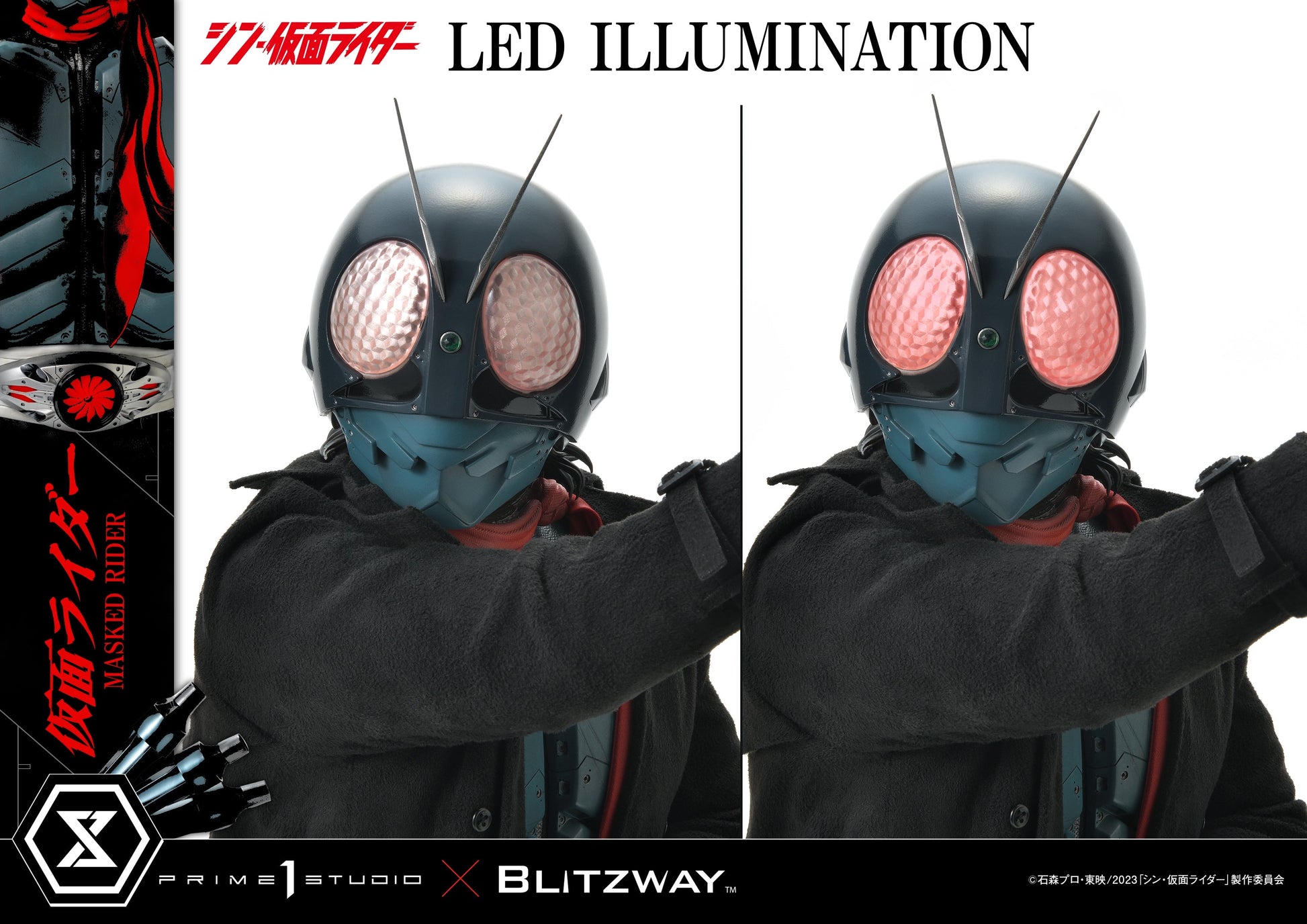 Introducing the Premium Masterline Series: Masked Rider – a true collector’s masterpiece. This 1/4 scale figure brings to life the iconic character from the 2023 film Shin Masked Rider, paying homage to the origins of this legendary hero.