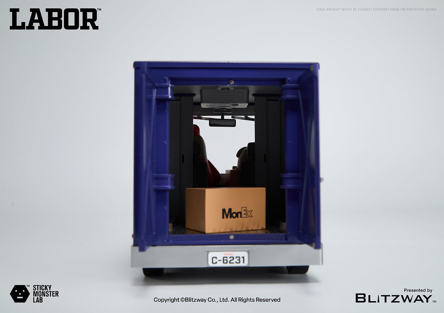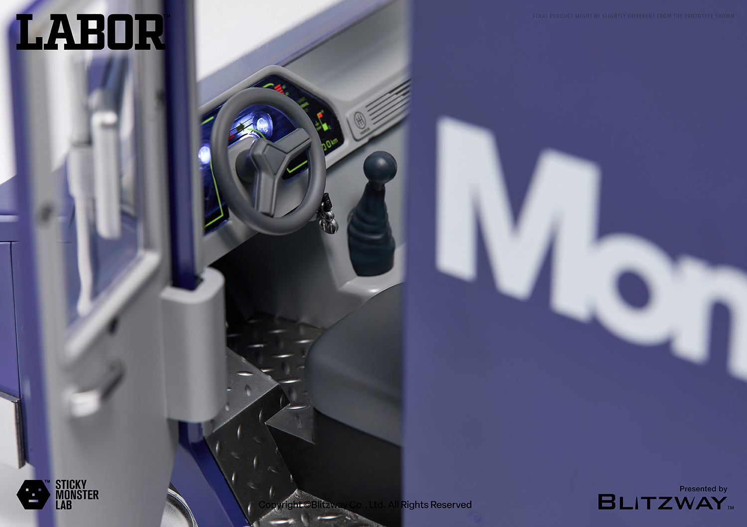 Featuring three doors and a fully openable ceiling, equipped with LED lights for front and rear lamps, operational wheels, and even a steering function for the front wheels. The intricately designed interior includes space in the trunk for the delivery of parcels to monsters, alongside Dogmon!
