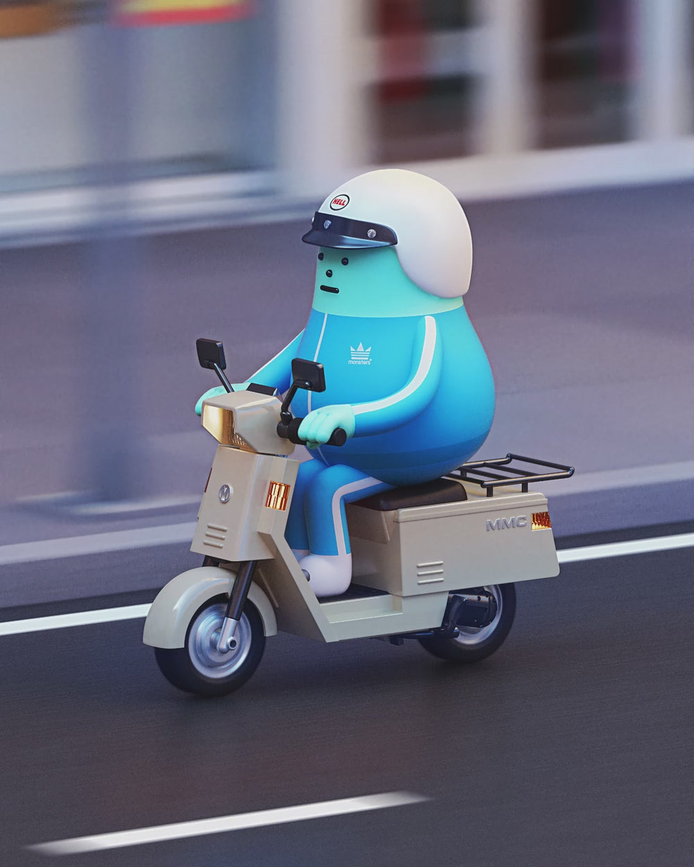 This collection consists of three versions denoted by S, M, and L, each serving as the monsters’ scooters, hatchbacks, and vans, respectively, within the everyday life of the monsters in M-City, their urban dwelling.