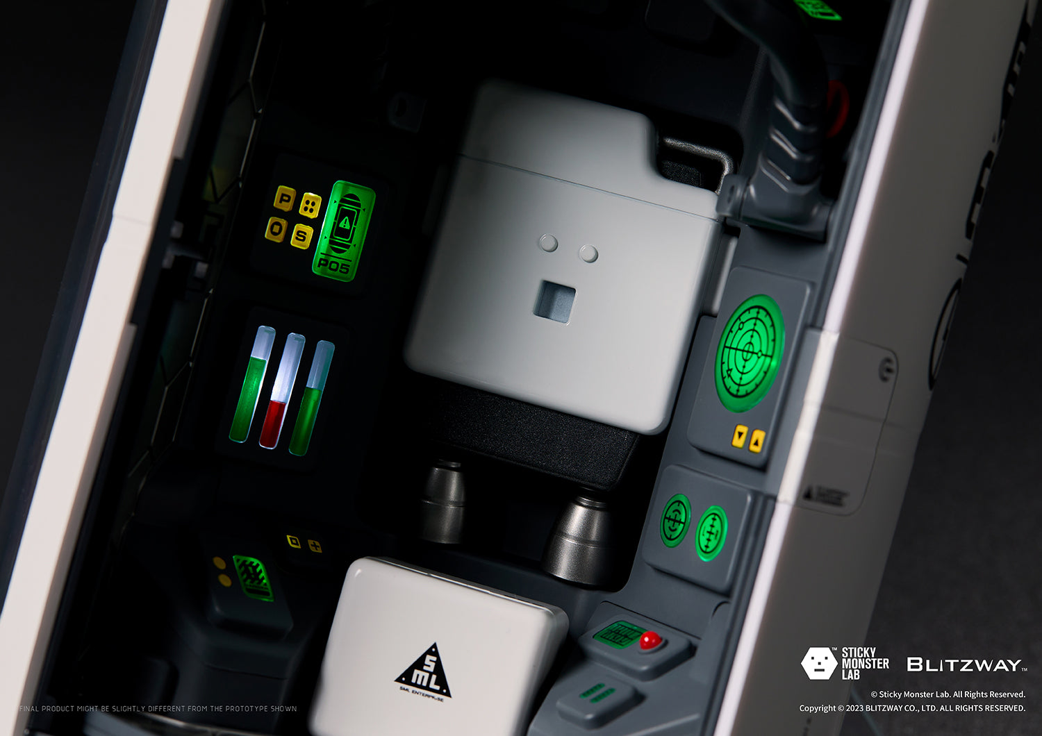 The interior of the escape pod is meticulously detailed, resembling the interior of an actual spacecraft, complete with safety bars. Moreover, the pod is equipped with 10 LEDs inside, as well as LEDs within the space soldier’s helmet visor, enabling dynamic lighting effects to enhance the immersive experience.