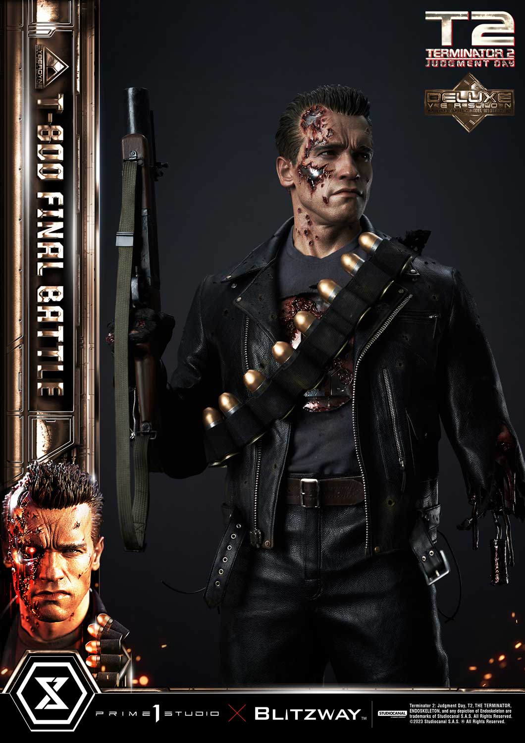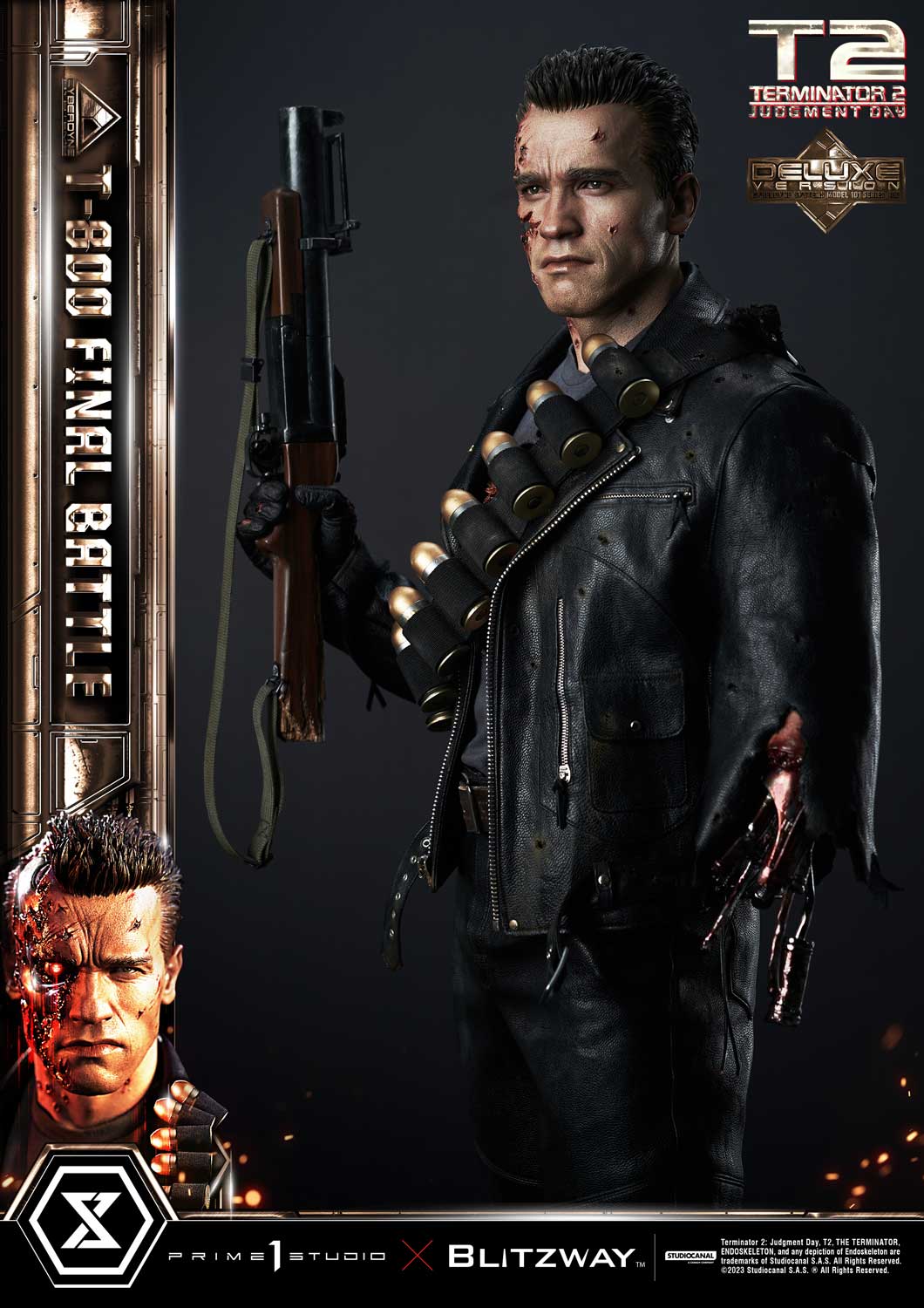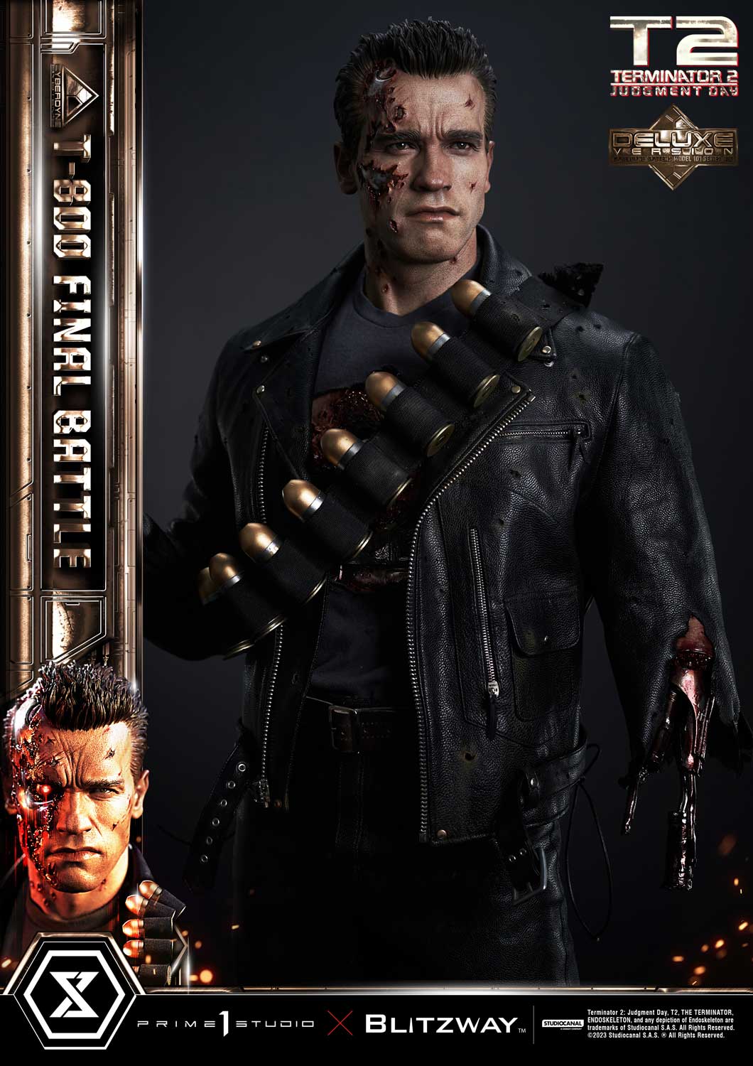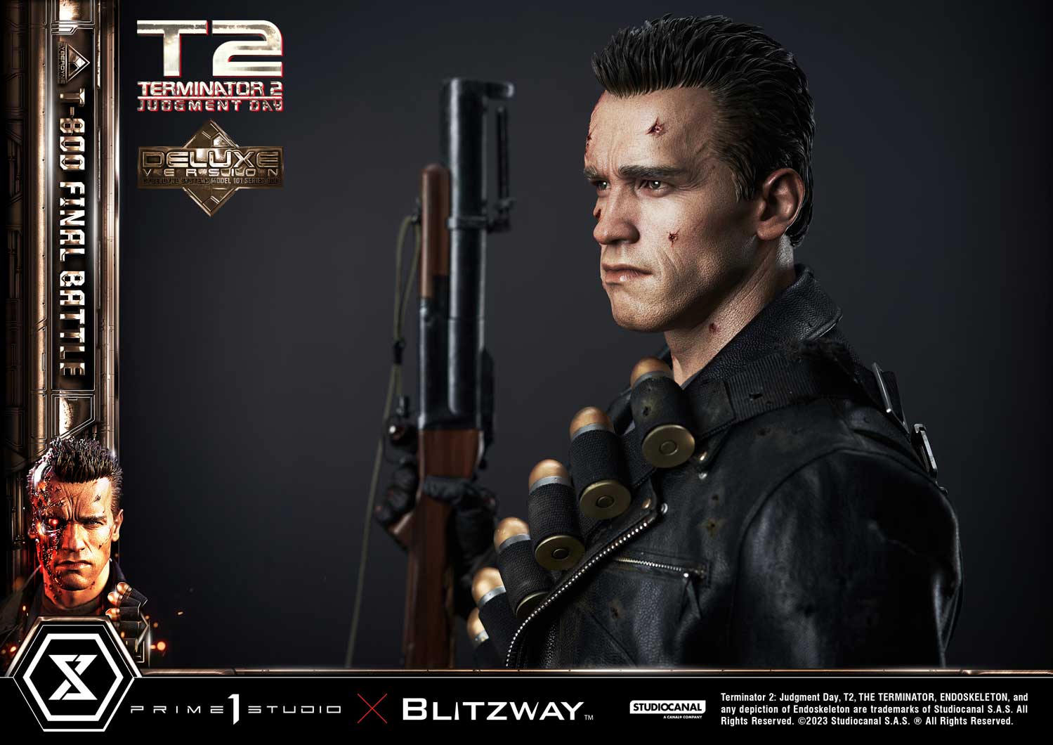 Prime 1 Studio is so proud to present yet again another astonishing collaboration with Blitzway, introducing the next entry to our Museum Masterline Series: The 1:3 Scale MMT2-02DXS T-800 Final Battle Deluxe Bonus Version from Terminator 2: Judgement Day!