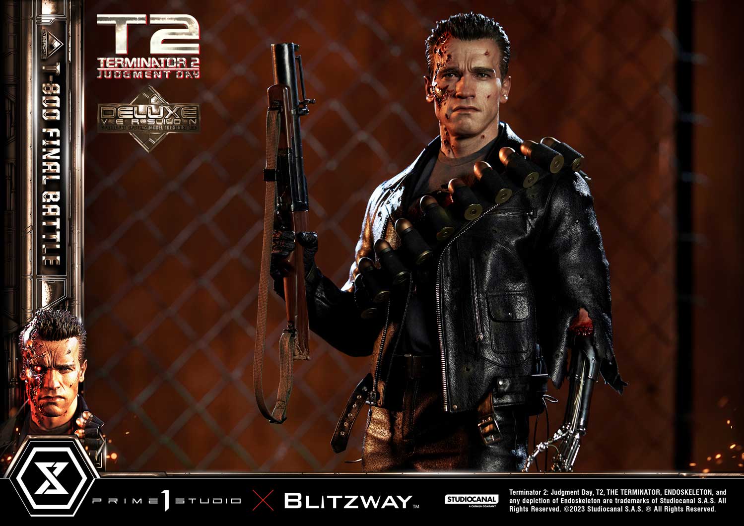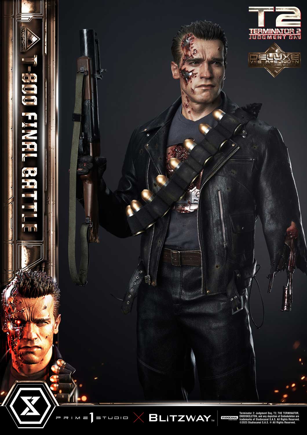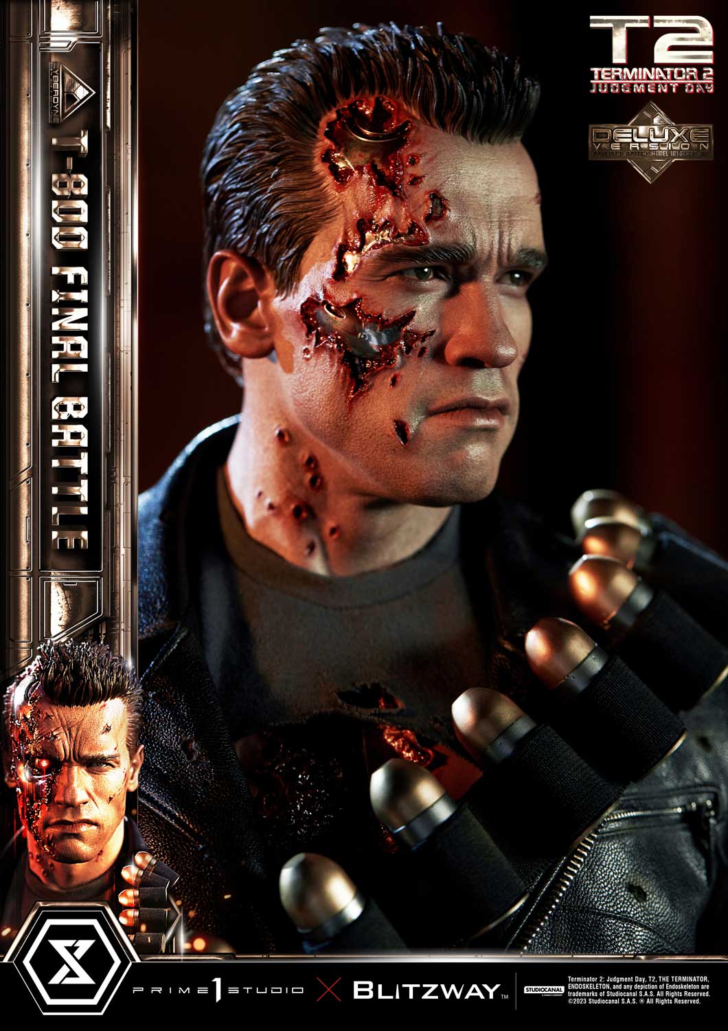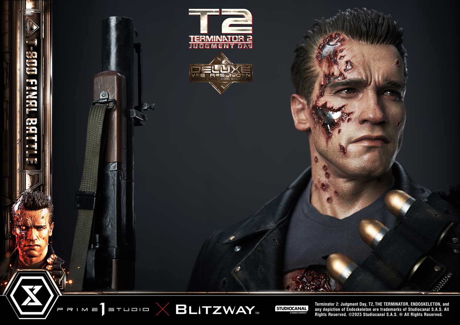 Prime 1 Studio is so proud to present yet again another astonishing collaboration with Blitzway, introducing the next entry to our Museum Masterline Series: The 1:3 Scale MMT2-02DXS T-800 Final Battle Deluxe Bonus Version from Terminator 2: Judgement Day!