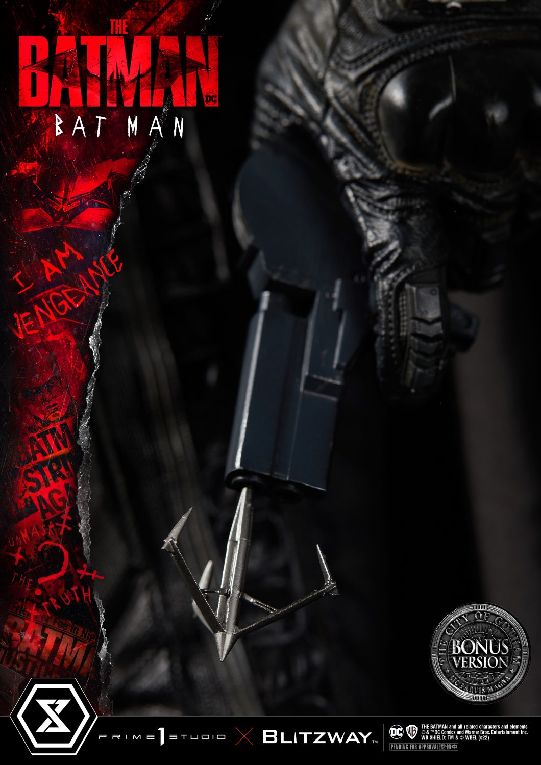 Furthermore, only when you pre-order this Bonus Version from our official online store or any authorized distributor for a limited time will you receive a cool Bonus Part: one (1) swappable Left Forearm Part holding the grappling hook and one (1) swappable Right Hand Part holding the Batarang!